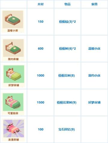 家具制作消耗一览