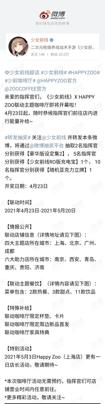 [微博拌匀]《少女前线》×HAPPYZOO联动主题咖啡厅即将开幕