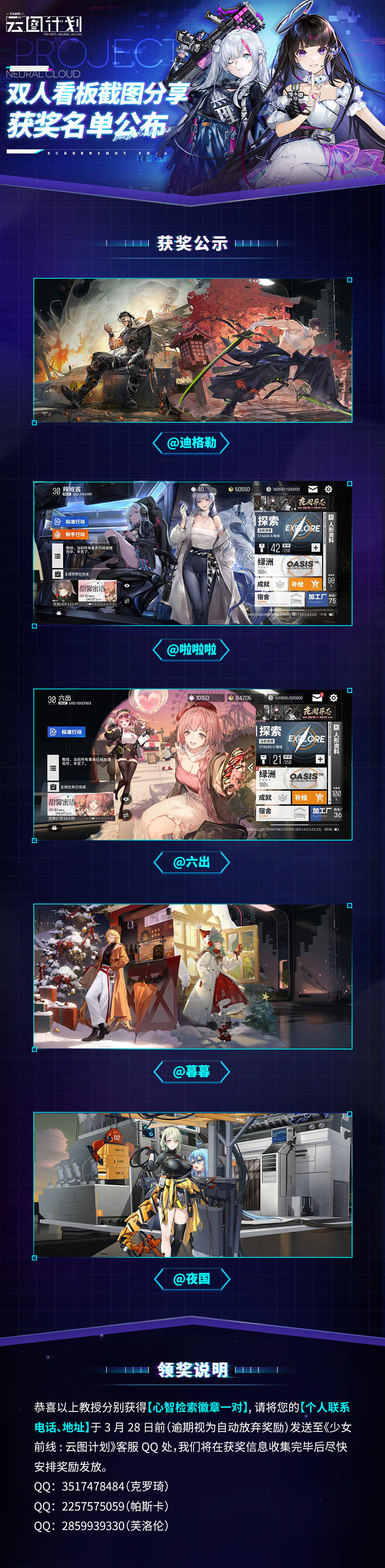 【获奖公布】双人看板截图分享活动获奖名单展示