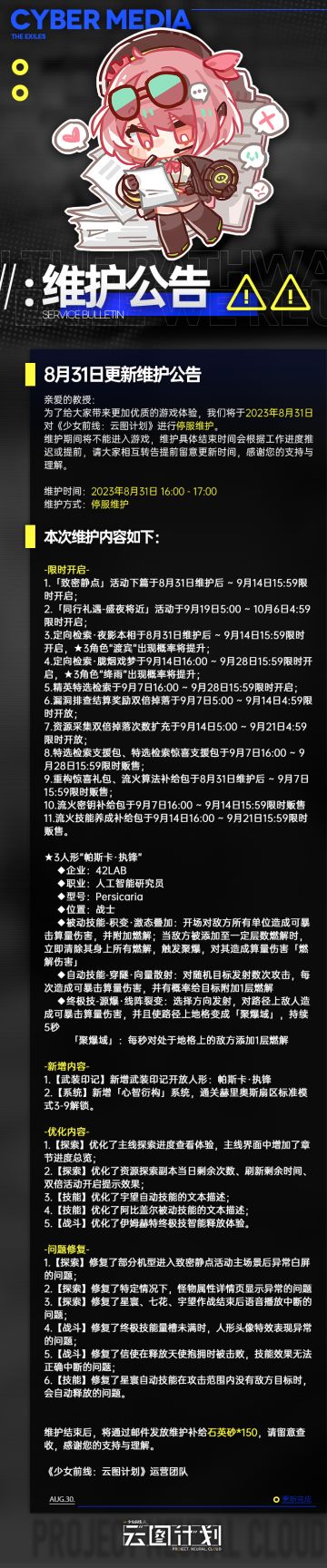 《少女前线:云图计划》8月31日更新维护公告