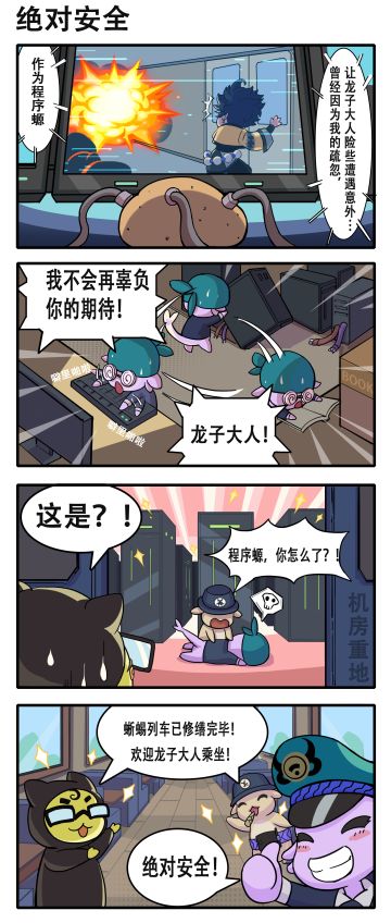 列车螈日记 | 四格漫画第一期:绝对安全! 随着列车发车日期临近,程序螈必须抓住这次机会证明自己! 确保龙子大人的绝对安全,列车全螈义不容辞! ————未尽山海,为你归来———— 全渠道预约现已开启,9月19日定档公测 立即前往预约,获取更多福利信息及游戏资讯 ◇ 官网预约:https://shjh.youzu.com/ ◇ iOS预约:https://apps.apple.com/cn/app/