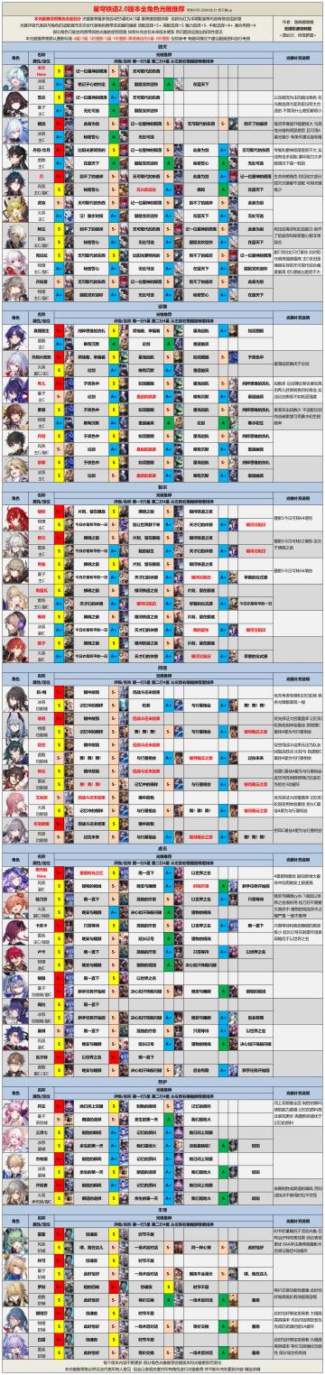 【V2.0攻略】2.0版本全角色光锥遗器推荐