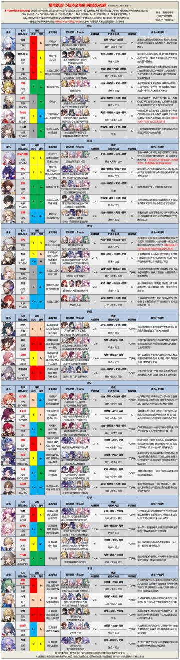 关于配队,你想知道的都在这了—— 1.5版本全角色评级配队推荐