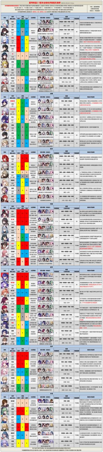 【V2.1攻略】2.1版本全角色评级配队推荐