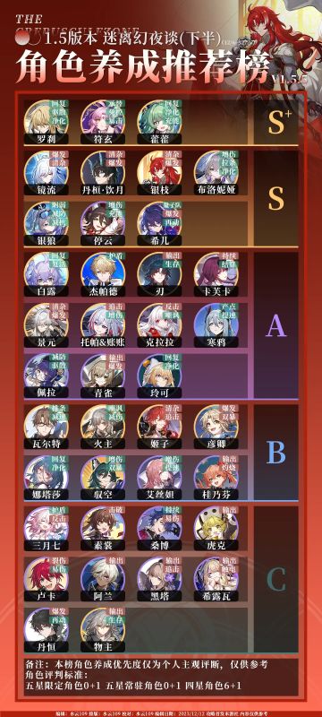 【V1.5攻略】角色养成推荐榜V1.5.5