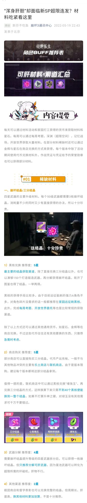 【崩坏3通讯中心】萌新攻略|干货来啦~新手向养成材料介绍与建议