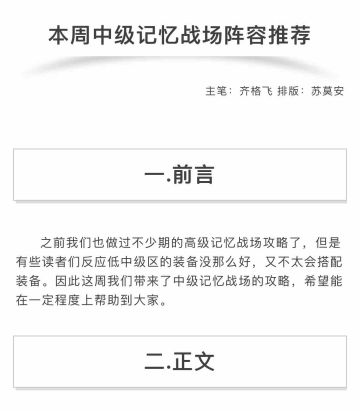 【记忆战场】本周中级记忆战场阵容推荐