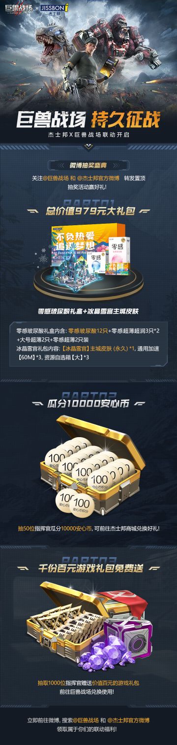 【巨兽战场x杰士邦】领979元杰士邦礼盒与巨兽战场永久冰晶雪宫礼包!