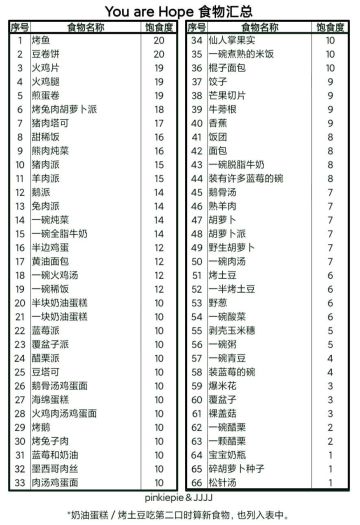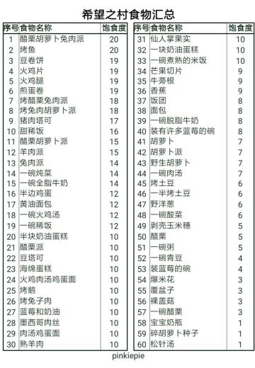 希望之村:你是希望 食物攻略