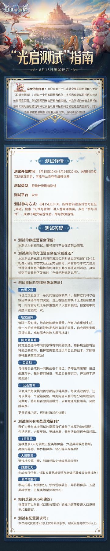 破晓测试 |《幻世与冒险》测试指南发布,6月15日正式开测!