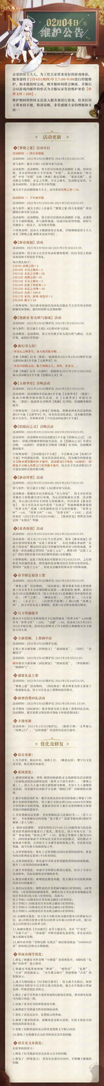 02月04日更新维护公告