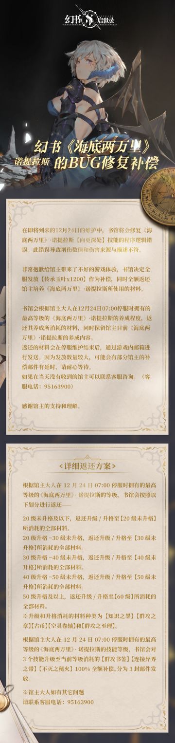 幻书《海底两万里》诺提拉斯的BUG修复补偿