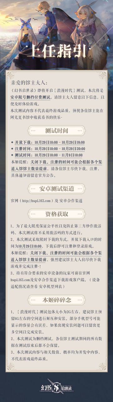 测试定档丨《幻书启世录》「浪漫时代」测试10月29日正式开启!