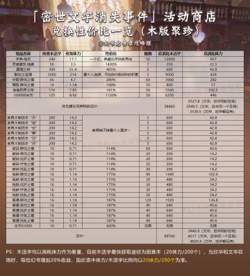 [攻略]「密世文字消失事件」活动商店兑换性价比一览(木版聚珍)