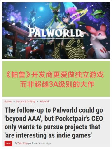 《幻兽帕鲁》开发商 更倾向制作独立游戏❗❗❗