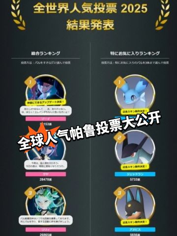 幻兽帕鲁 全球人气投票结果公开❗