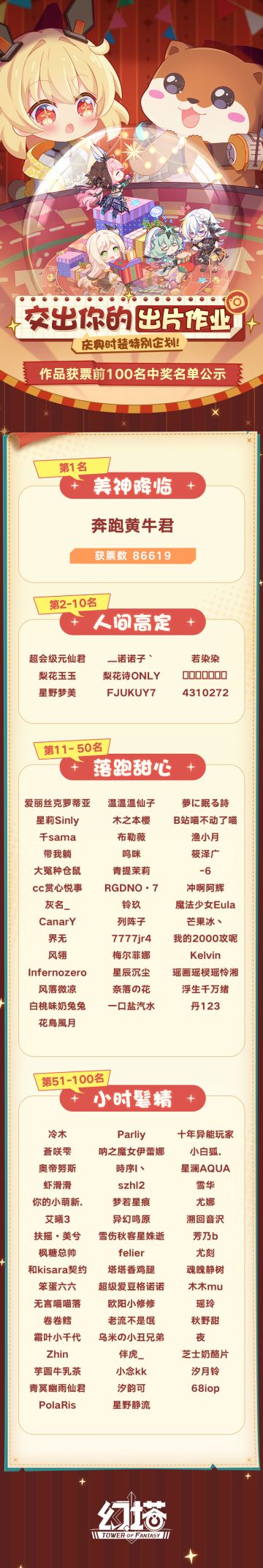 《幻塔》庆典时装特别企划获奖名单