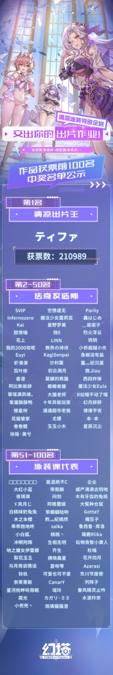 《幻塔》清凉泳装特别企划中奖名单