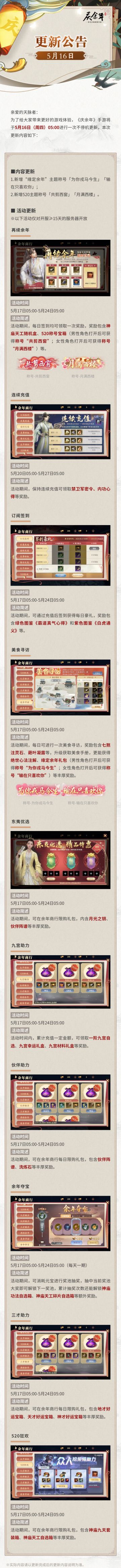 【公告】5月16日更新公告