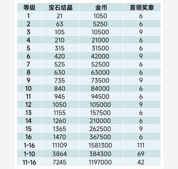 宝石升级1-16消耗统计