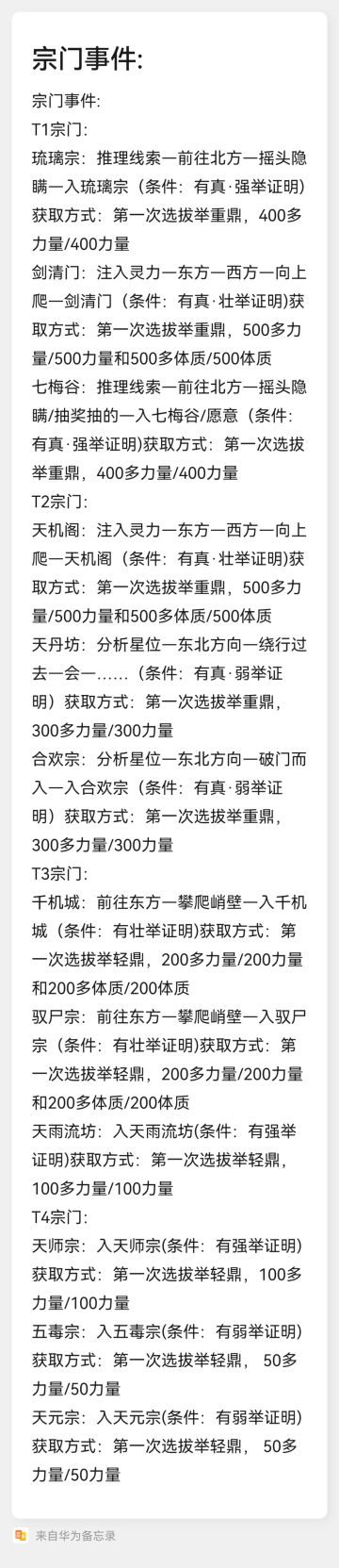 部分宗门攻略