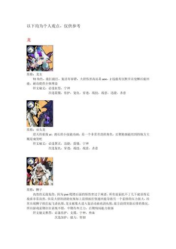 角色评价 (4.11更新歌姬)