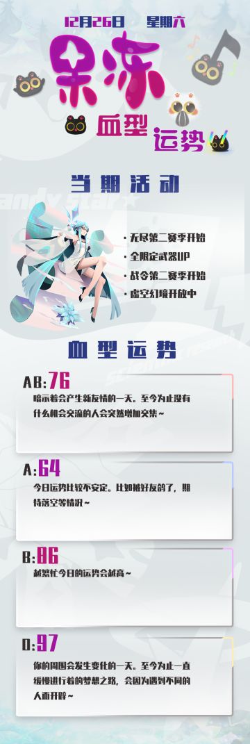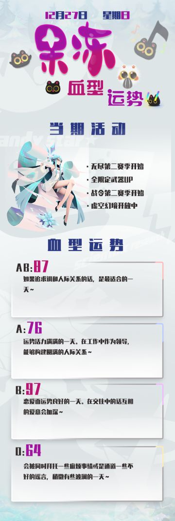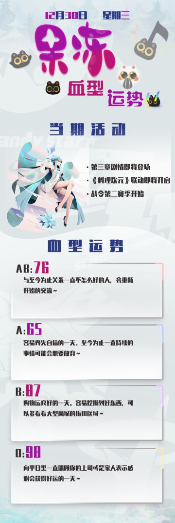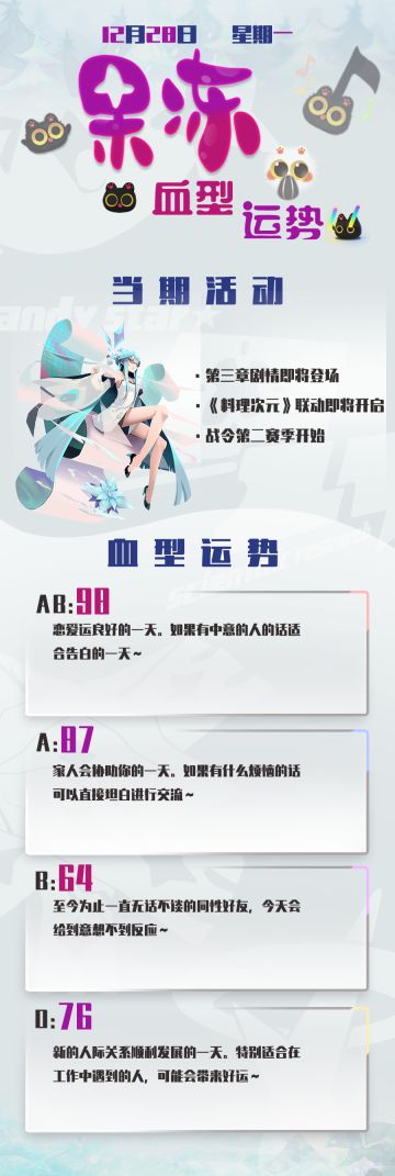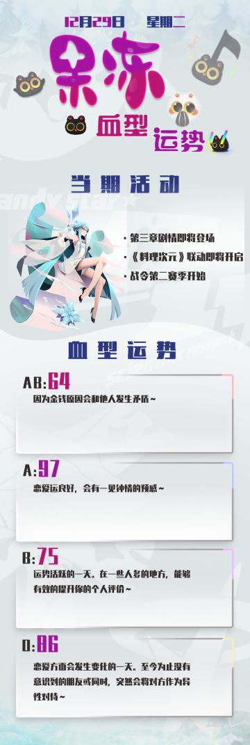 { "text": "今日份果冻血型运势奉上~\n今天晚些时候会再放一张剧情图的哦~一起来猜吧!", "raw_text": "" }