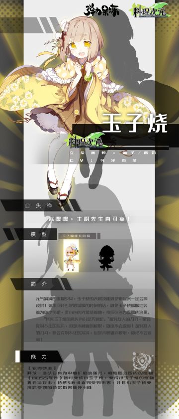 { "text": "联动人物——玉子烧\n画师:薯子/酸奶\nCV:花泽香菜\n元气满满的迷糊少女,玉子烧的天赋技能,就是跑起来一定会摔跤哦!可爱的玉子烧大概真实身份是天使吧。\n能力(1星):\n【软绵梦境】\n释放一道以自身为中心扩散的强光,将地图范围内的怪物(BOSS除外)暂时变成小玉子烧,变成小玉子烧的怪物将无法攻击,持续5秒或直到受到伤害,并且小玉子烧变形后受到的首次伤害额外*10", "raw_text": "" }