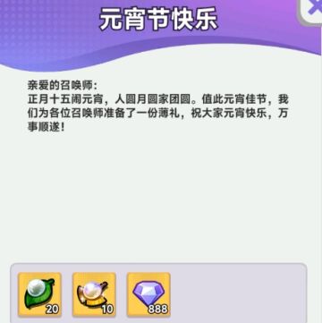 【全服邮件】🎉元宵邮件已送达,登录游戏即可领取~