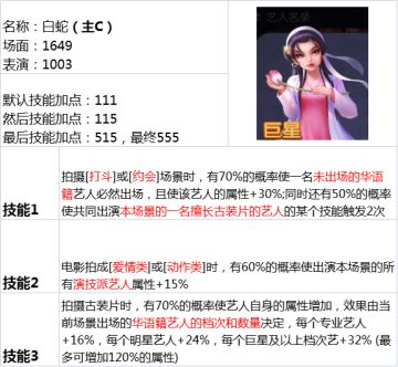 古装能C:东方不悔(技能3,巨星助理说明)