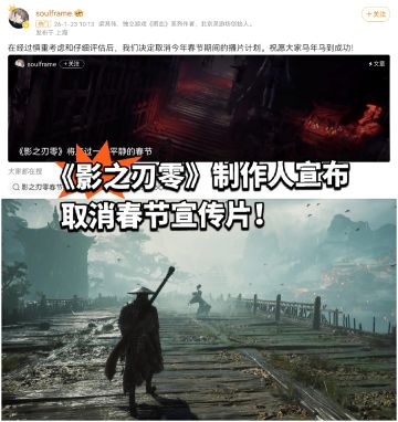 《影之刃零》制作人宣布取消春节宣传片!