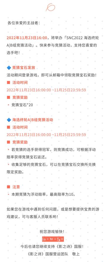 竞猜宝石发放与SNC2022 海选终轮CD组竞猜活动