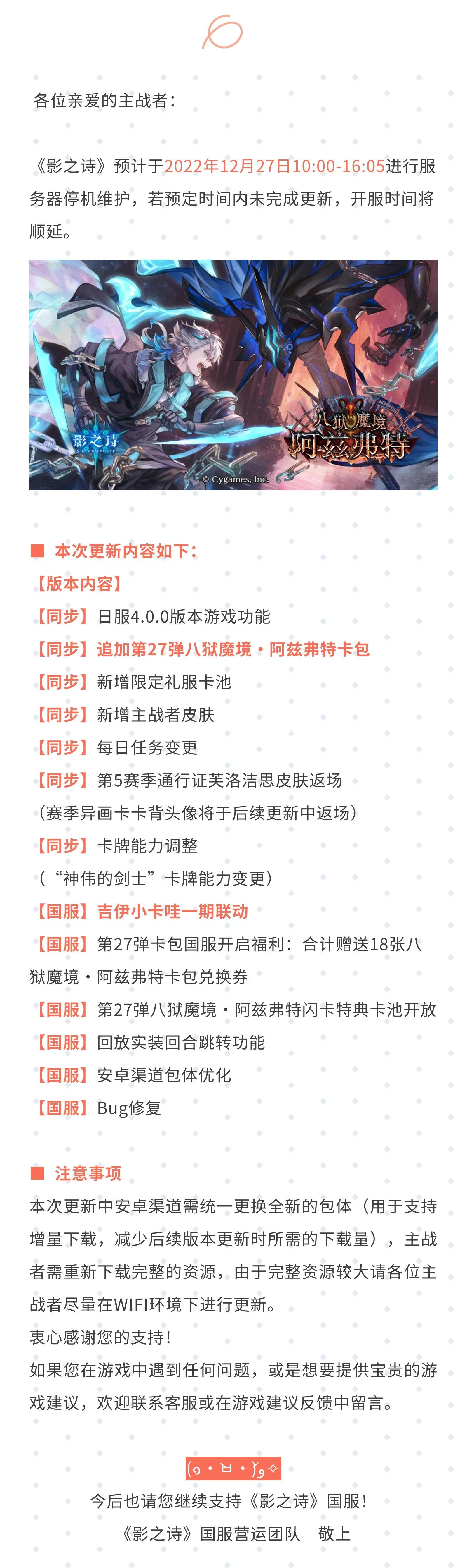 《影之诗》关于3.4.21版本强制更新说明