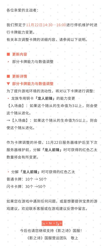 《影之诗》11月22日服务器维护时卡牌能力变更调整公告#影之诗