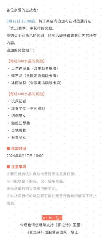 对战通行证【第11赛季】登场公告#影之诗