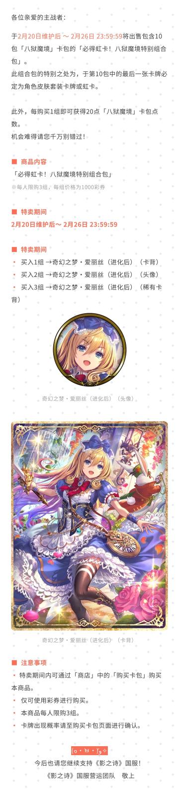 必得虹卡!八狱魔境特别组合包特卖公告#影之诗