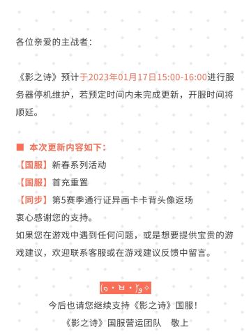 【影之诗】01月17日服务器停机维护公告