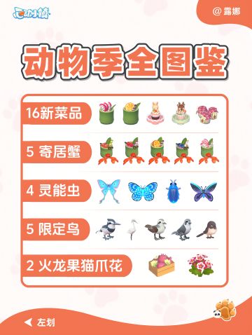动物新邻 鸟虫鱼食谱作物花朵 图鉴攻略 全