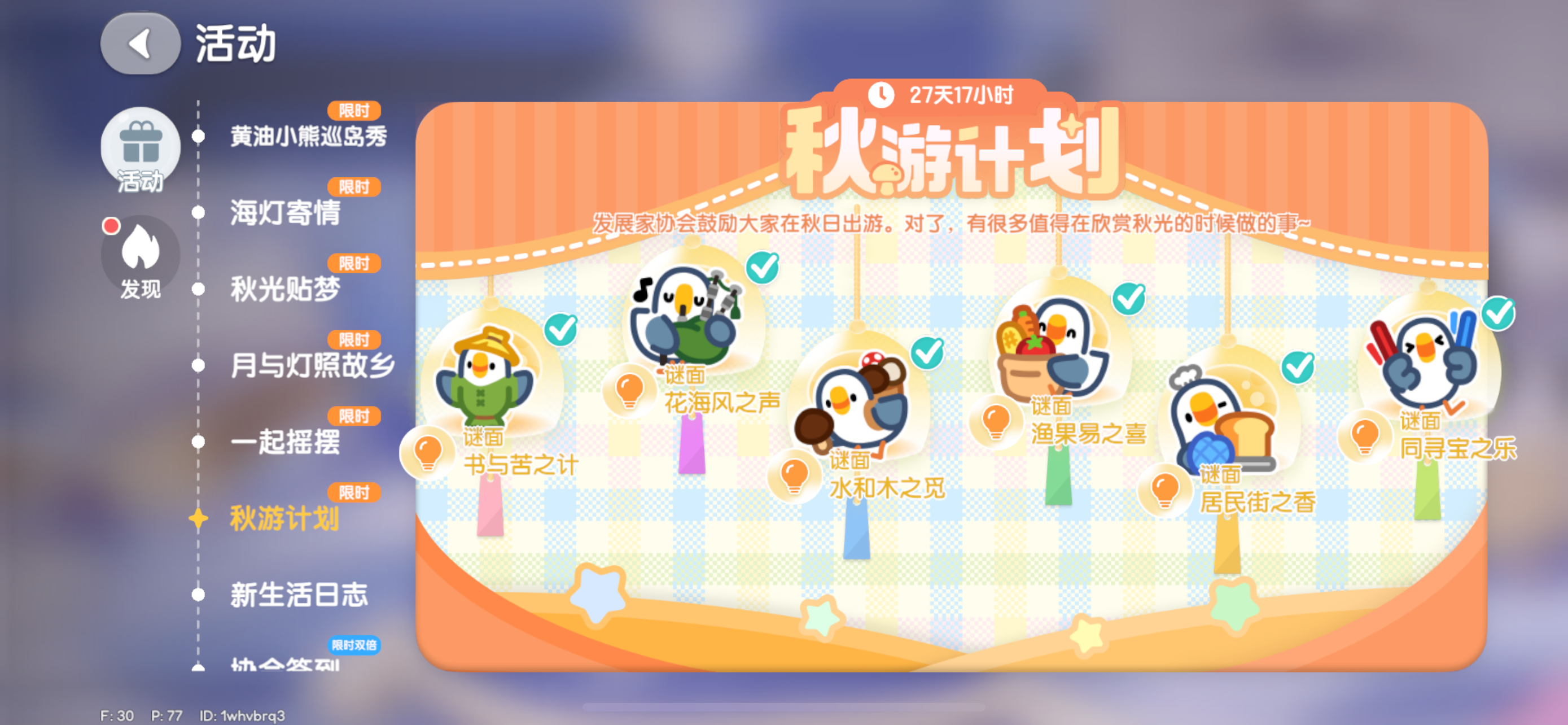 陇上金颂秋游计划谜面泡泡攻略(6个全)