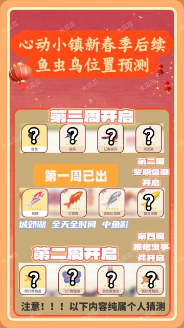 新春季后续鱼虫鸟位置猜测(请勿当真)