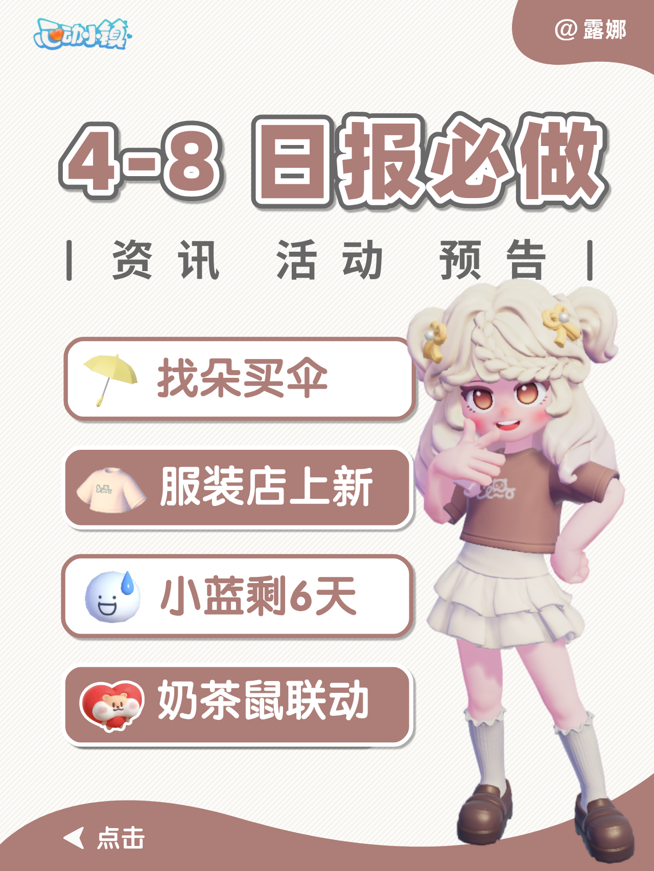 4月8日小镇日报 找朵买伞 小蓝剩6天 奶茶鼠