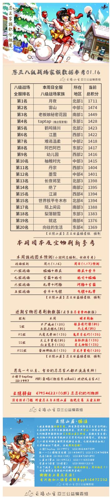 【云隐山居】忍三家族战八级战场排名概览(NO.0116周六版)