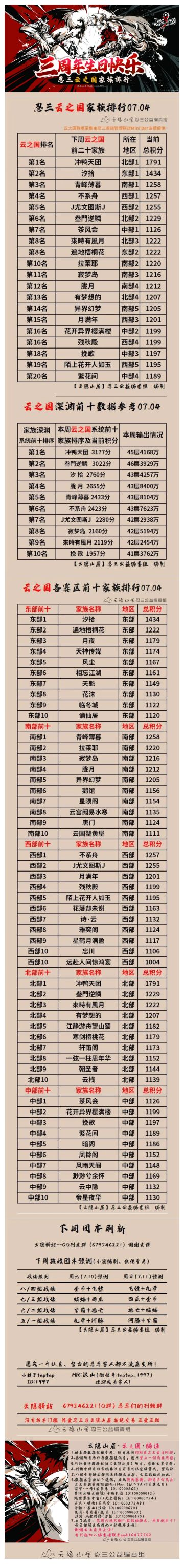 【云隐山居·云之国·周刊】忍三家族积分排行榜(NO.0704周日版)
