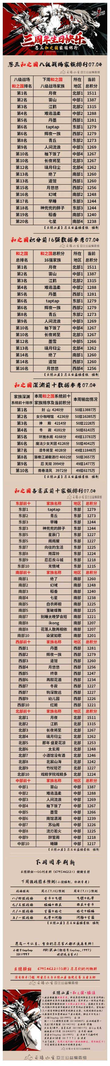 【云隐山居·和之国·周刊】忍三家族积分排行榜(NO.0704周日版)