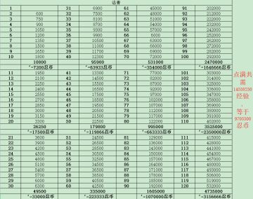 忍者洛青升级所需经验(附详细图)