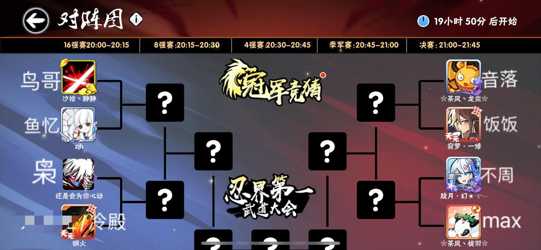 第十四届武道会(一服)苍牙16强运动员表(回复心仪冠军参与抽奖)