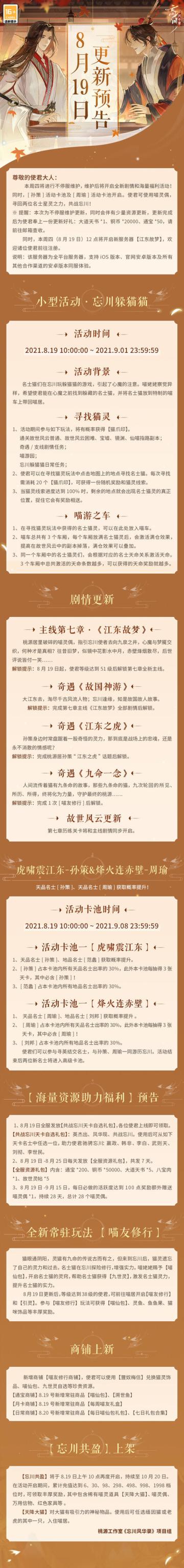 【忘川风华录】8月19日“江东故梦”全新主线更新预告