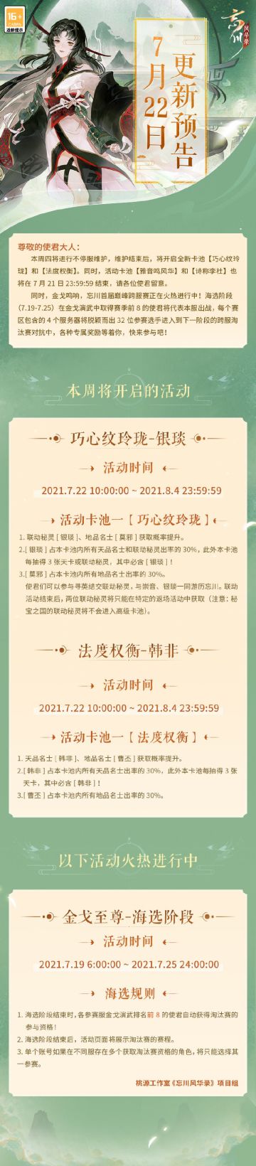 【忘川风华录】7月22日更新预告