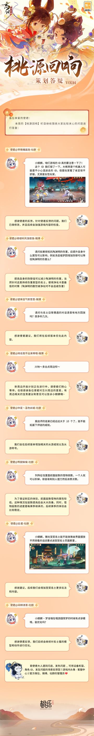 桃源回响Vol.142丨名士平衡性调整、好友列表优化等问题答疑来啦!