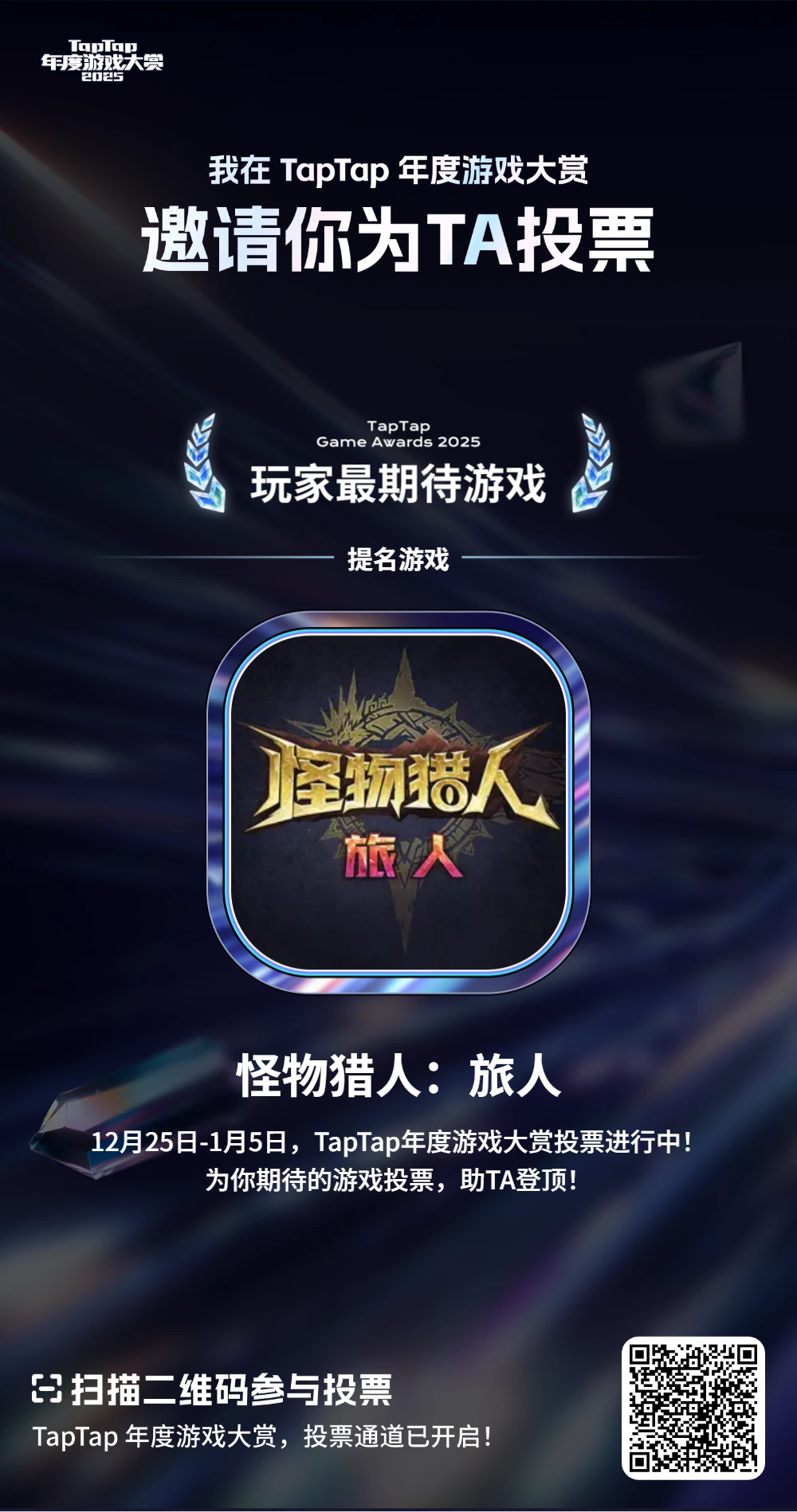 【内有福利】老大来投票喵!支持怪猎旅人喵!